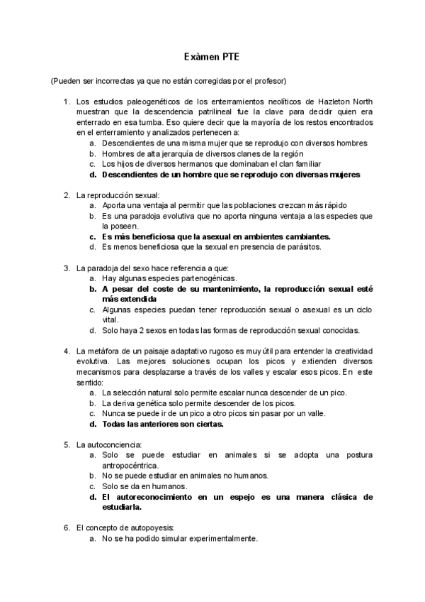 He publicado nuevos examenes de 3º Principales Transiciones Evolutivas: Soluciones-PTE-examen-2022.pdf