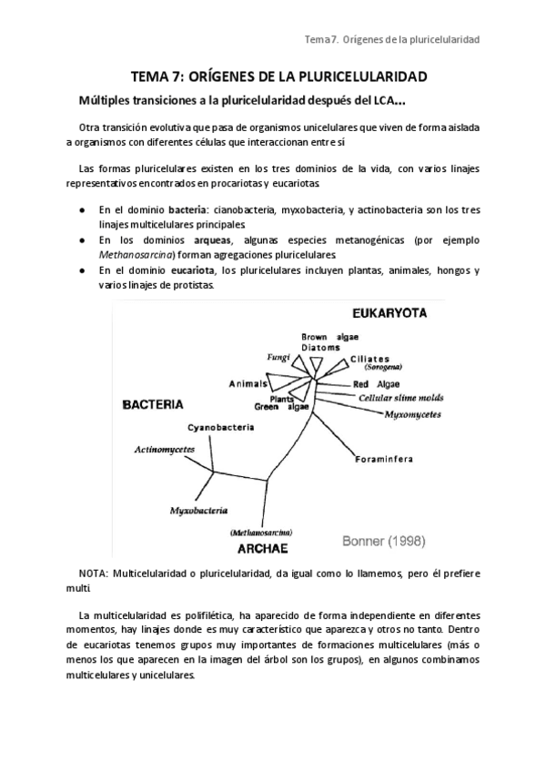 Tema 7. Orígenes pluricelularidad