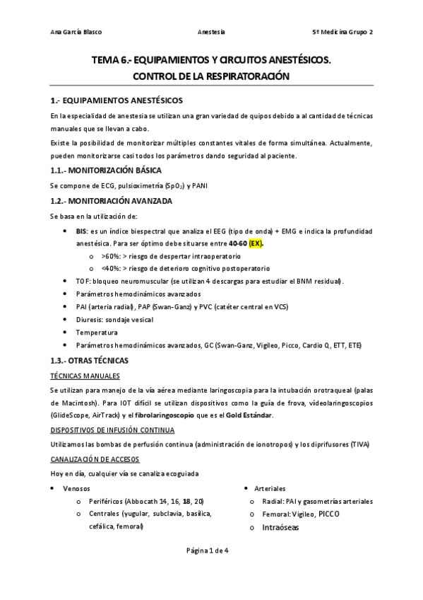 He publicado nuevos apuntes de 5º PRINCIPIOS BASICOS DE ANESTESIA Y REANIMACION. ATENCION URGENTE AL PACIENTE CRITICO: Esquemas Anestesia