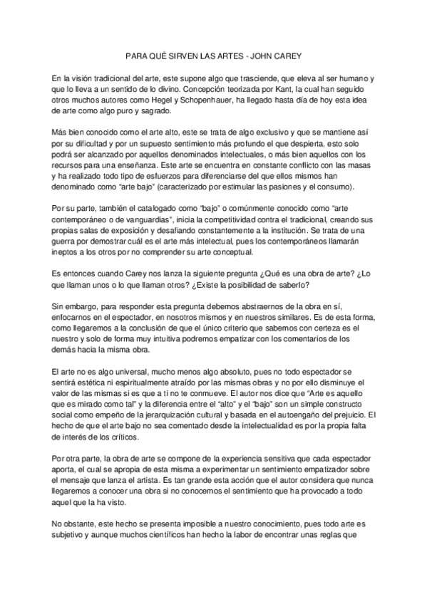 He publicado nuevos apuntes de 1º PRINCIPIOS BÁSICOS DE LA ESCULTURA: Reflexion-Libro-Para-que-sirven-las-artes-de-John-Carey.-Carmen-Rueda-Jimenez.docx