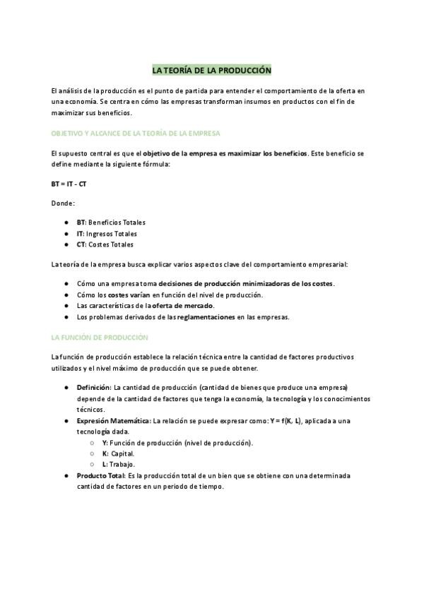 Apuntes Tema 4: FUNCIONES DE PRODUCCIÓN Y COSTES. COMPETENCIA PERFECTA, 1º de Criminología. Principios de Economía