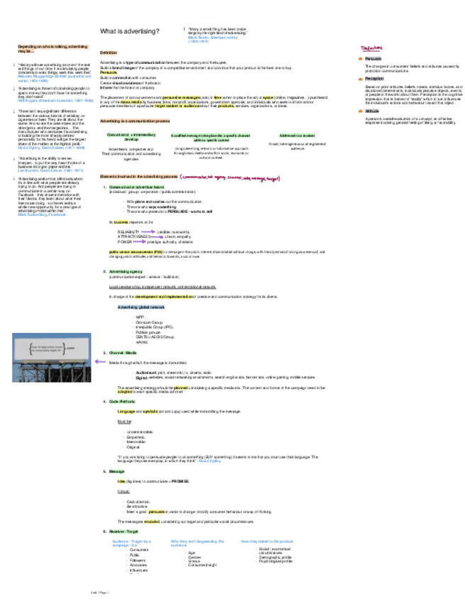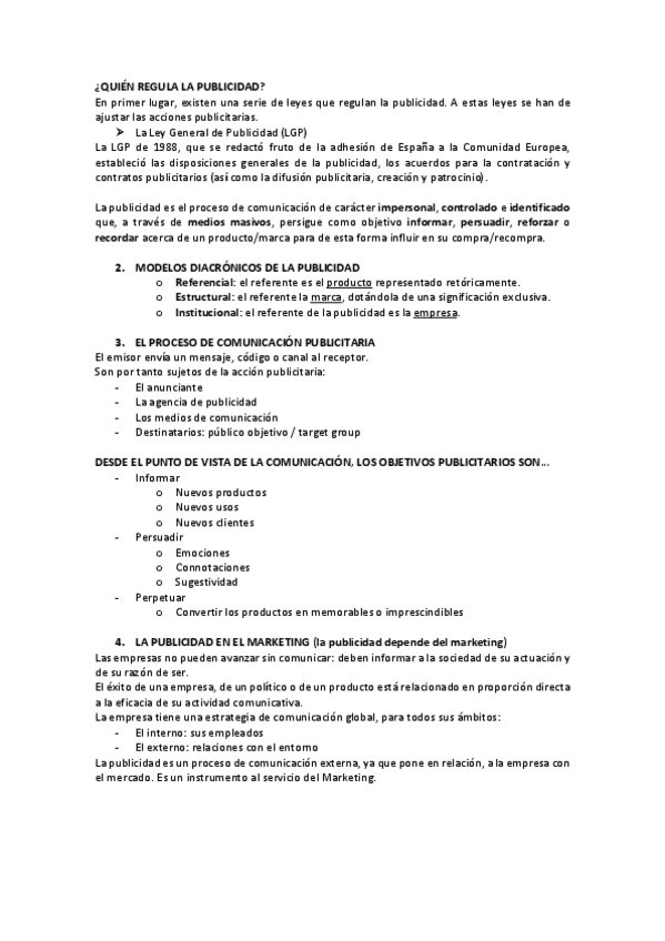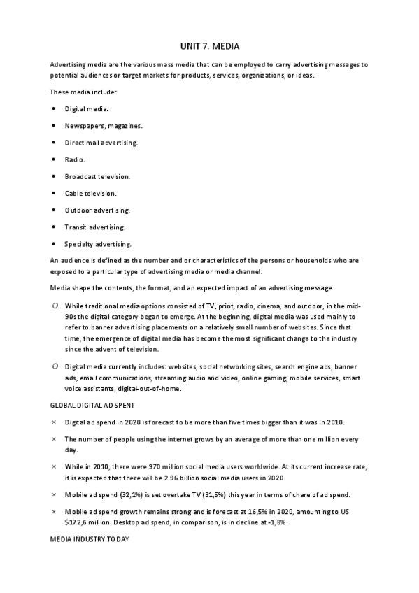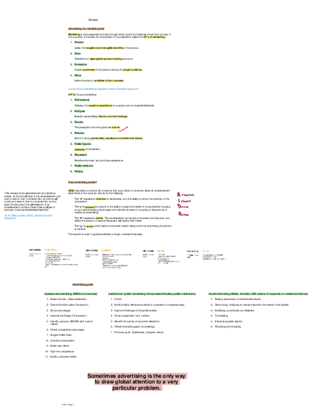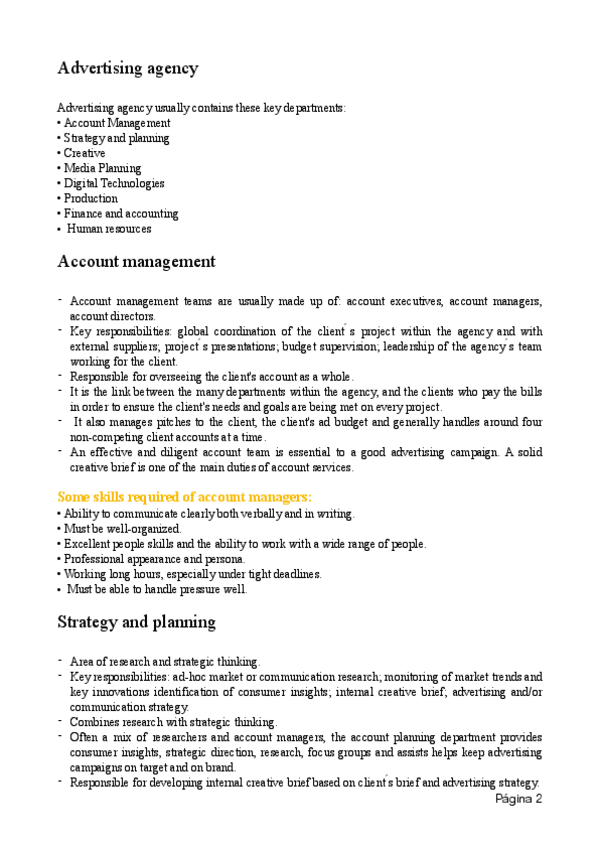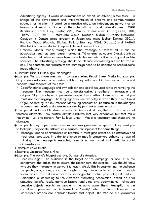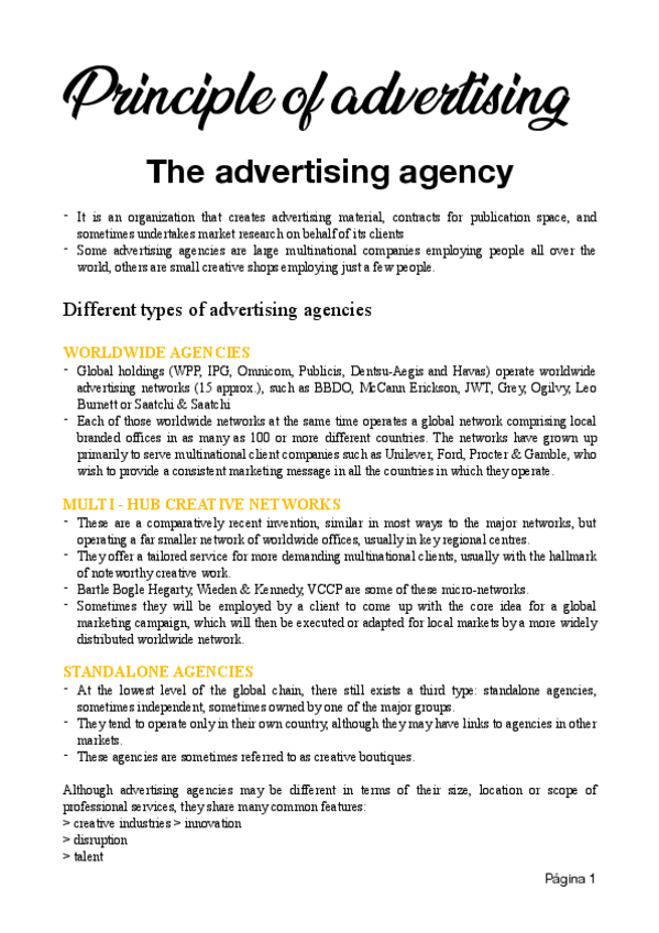 Apuntes para el examen final de Principios de Publicidad (2024-2025) Profesor: Víctor Uclés Idioma: Inglés