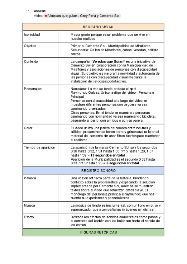 Este es un análisis de un spot publicitario sobre la discapacidad visual, contiene elementos visuales, sonoros y figuras retóricas, de manera concreta y facil de entender.