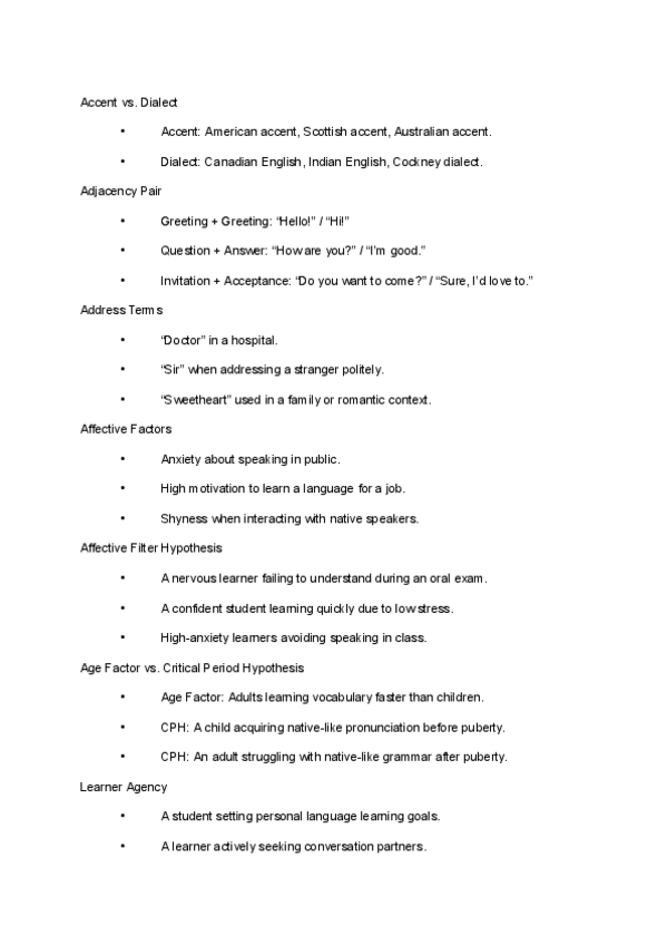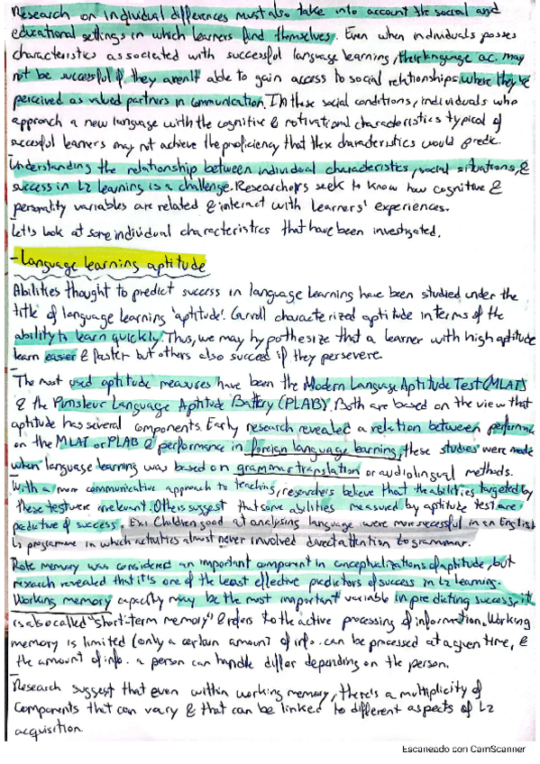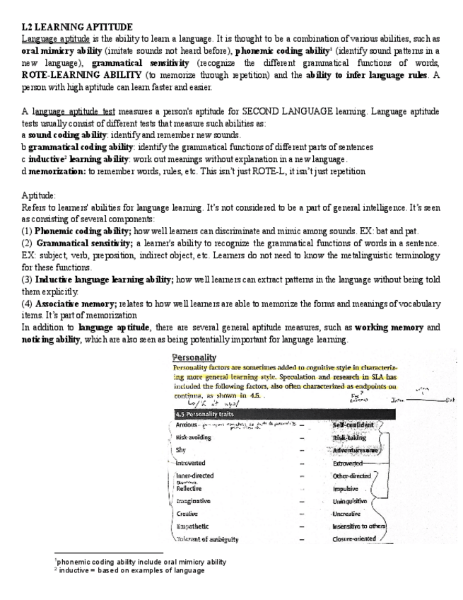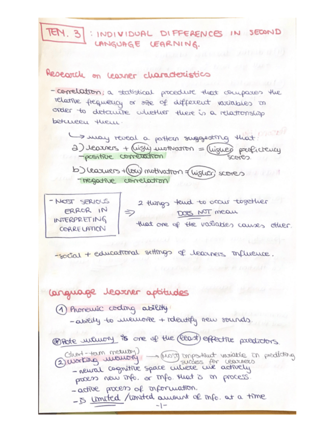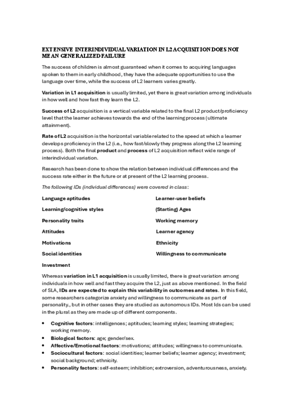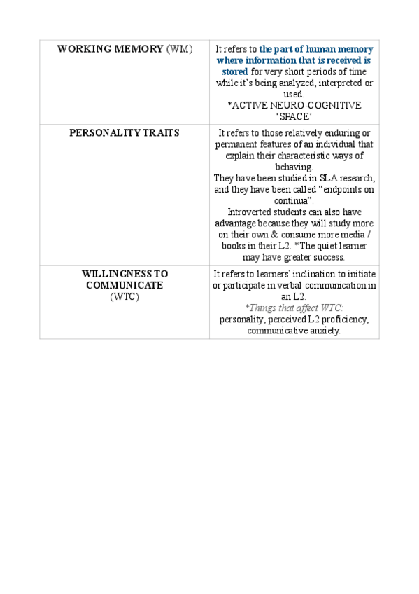 Son algunas de las diferencias individuales que se han dado en clase, sacadas de una ficha de T/F. Para ver los otros mejor completar con el booklet por la pag. 81-84 :)