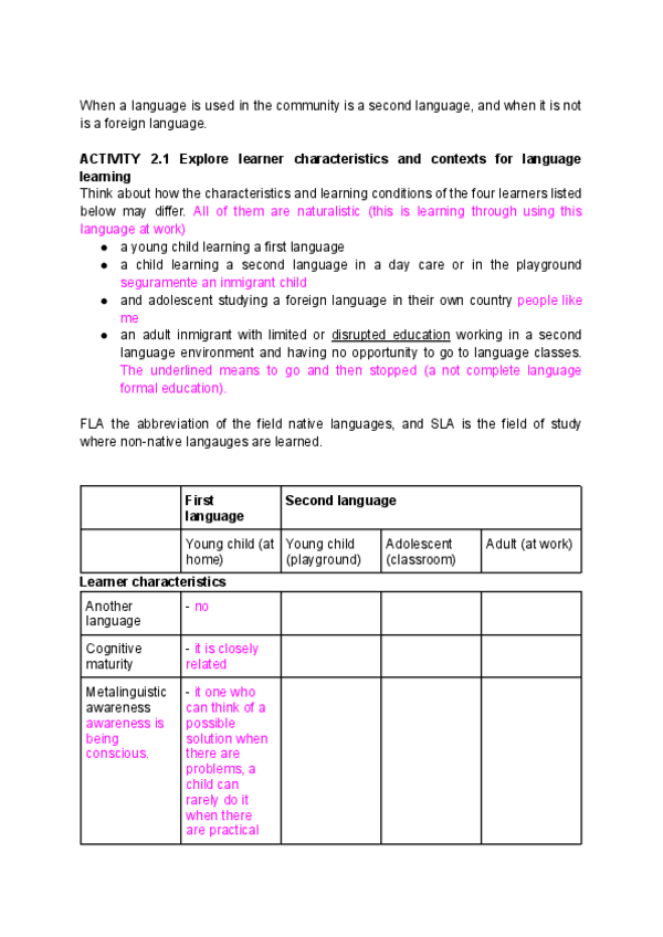 Mezcla de apuntes cogidos en clase, el primer cap de How Languages are Learned, el primer cuadernillo y fichas que ha dado en clase. El capítulo y primer cuadernillo están enteros en el archivo.