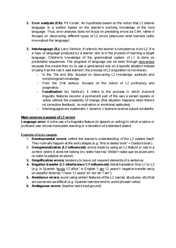 Engloba las pgs 64-67. Tengo subido otro documento "HYPOTHESES AND L2 ERRORS" que es la continuacion de esta parte en el booklet :)