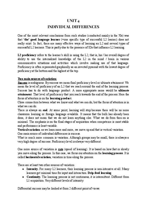 Son algunas de las diferencias individuales que se han dado en clase, sacadas de una ficha de T/F. Para ver los otros mejor completar con el booklet por la pag. 81-84 :)