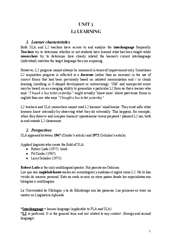Mezcla de apuntes cogidos en clase, el primer cap de How Languages are Learned, el primer cuadernillo y fichas que ha dado en clase. El capítulo y primer cuadernillo están enteros en el archivo.