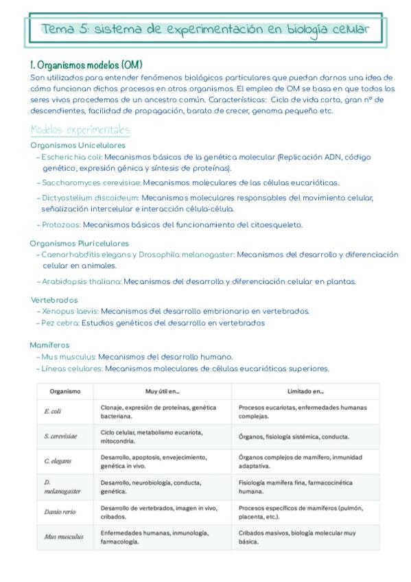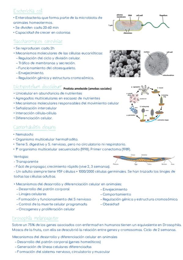 Apuntes del tema 5 de biología célula, lsistema de experimentación en biología celular”. SOLO ESTA EL PUNTO DE ORGANISMOS MODELOS!