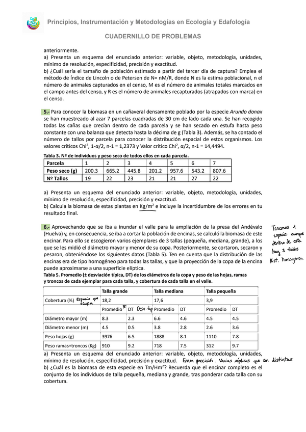 He publicado nuevos ejercicios de 1º Principios, Instrumentación y Metodologías en Ecología y Edafología: Cuadernillo-de-problemas.pdf
