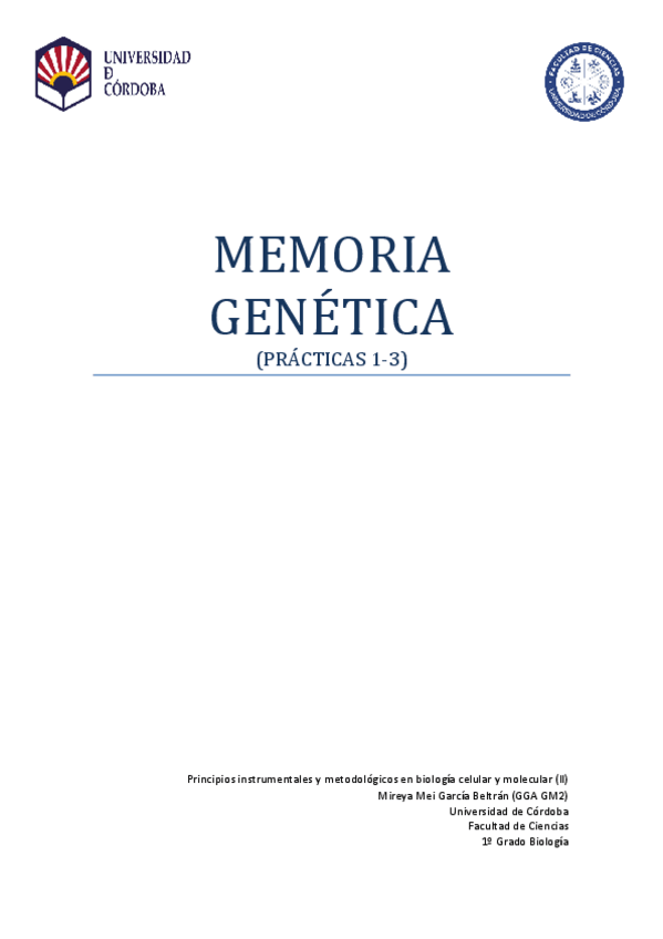 He publicado nuevos trabajos de 1º Principios Instrumentales y Metodológicos en Biología Celular y Molecular Ii: Memoria de Genética Prácticas 1-3 Nota 10.pdf