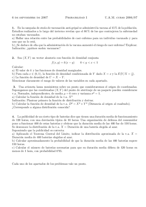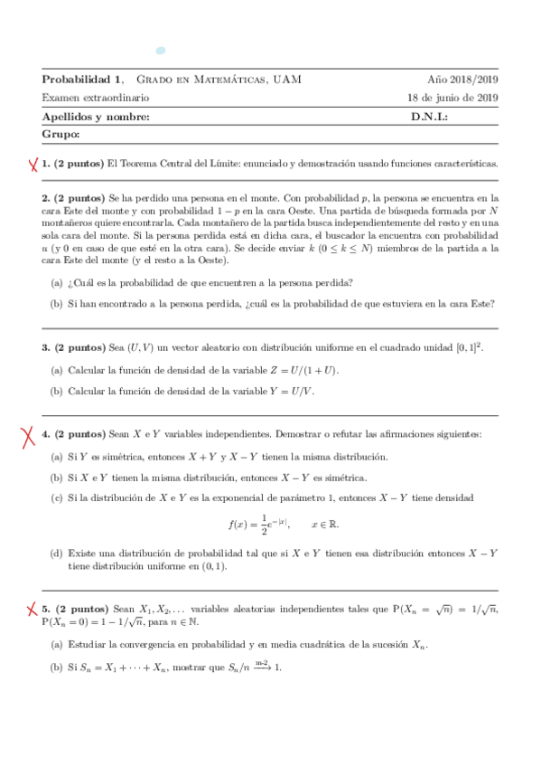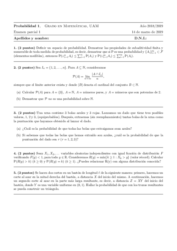 He publicado nuevos examenes de 2º Probabilidad I: Parcial1enunciados.pdf