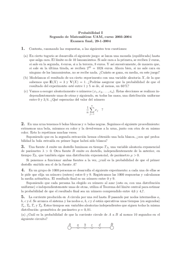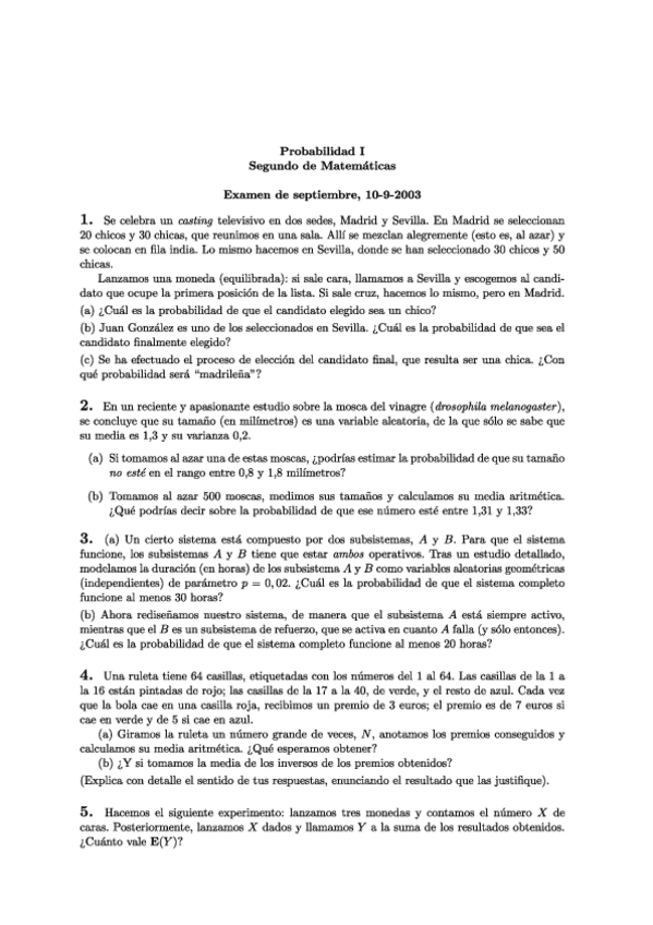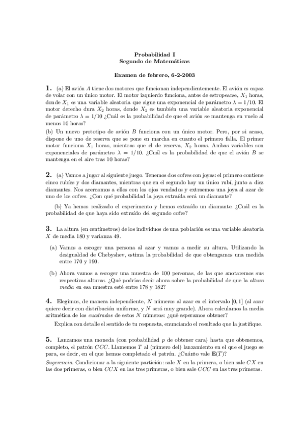 He publicado nuevos examenes de 2º Probabilidad I: Exámenes de otros años