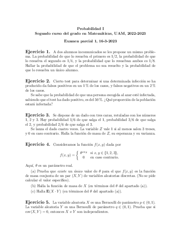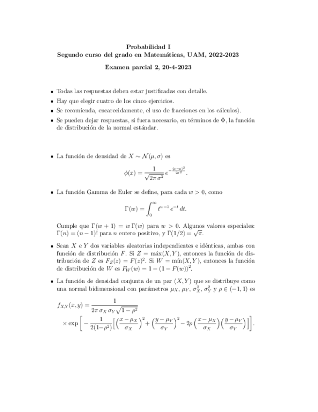 He publicado nuevos examenes de 2º Probabilidad I: Parciales 1 y 2 (2022-2023)