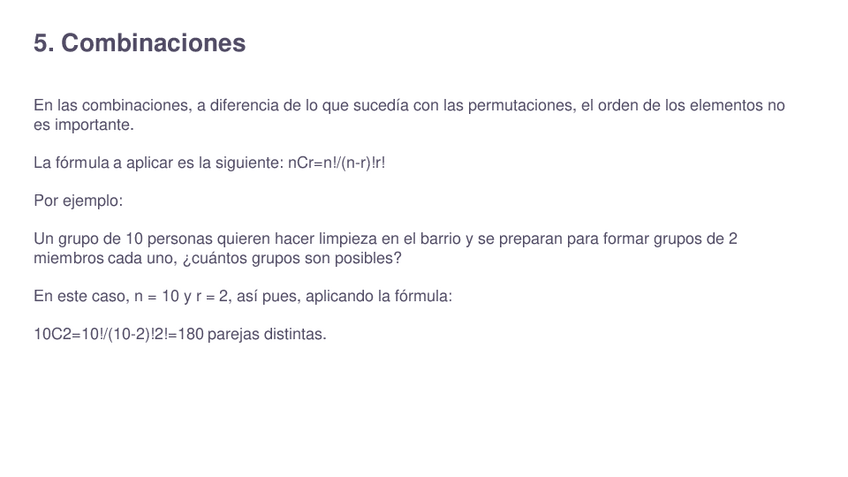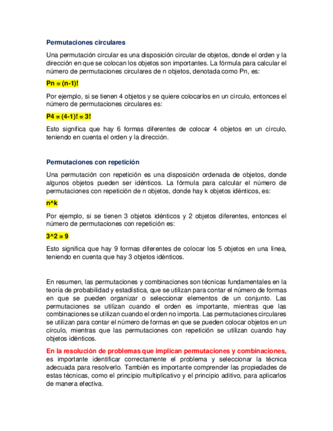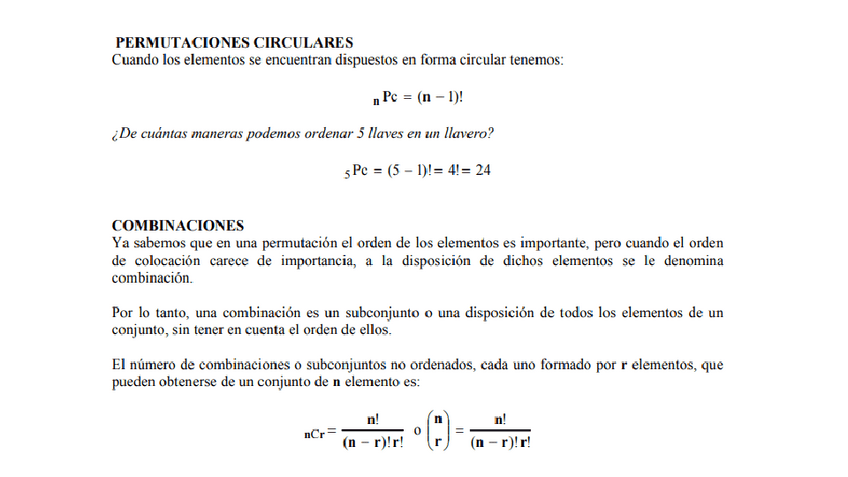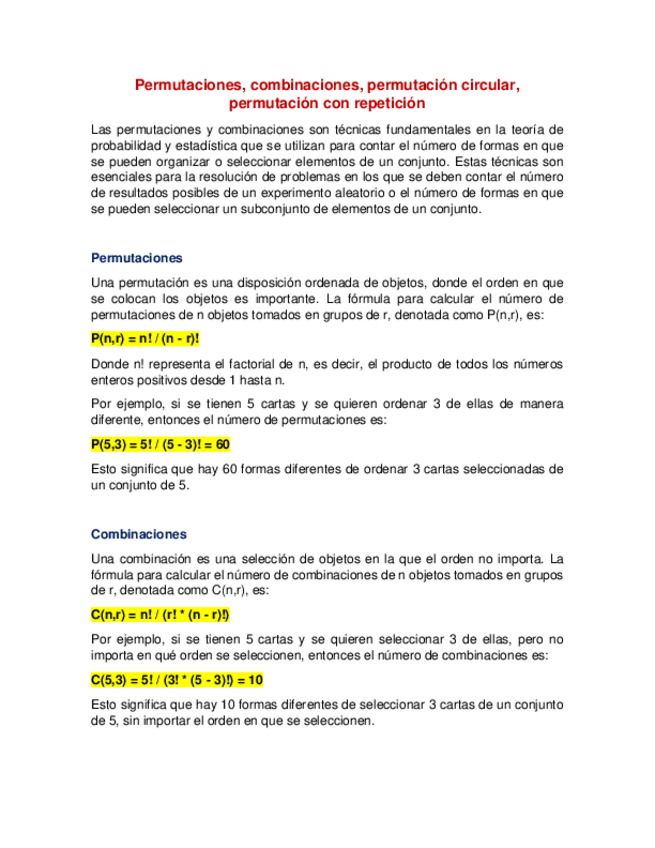 Permutaciones, combinaciones, permutación circular, permutación con repetición