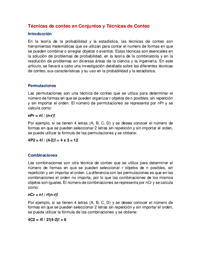 Técnicas de conteo en Conjuntos y Técnicas de Conteo