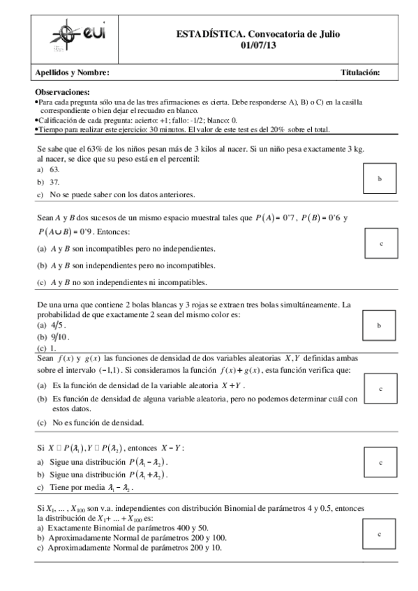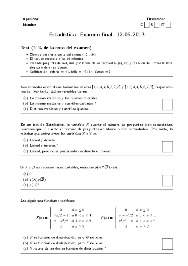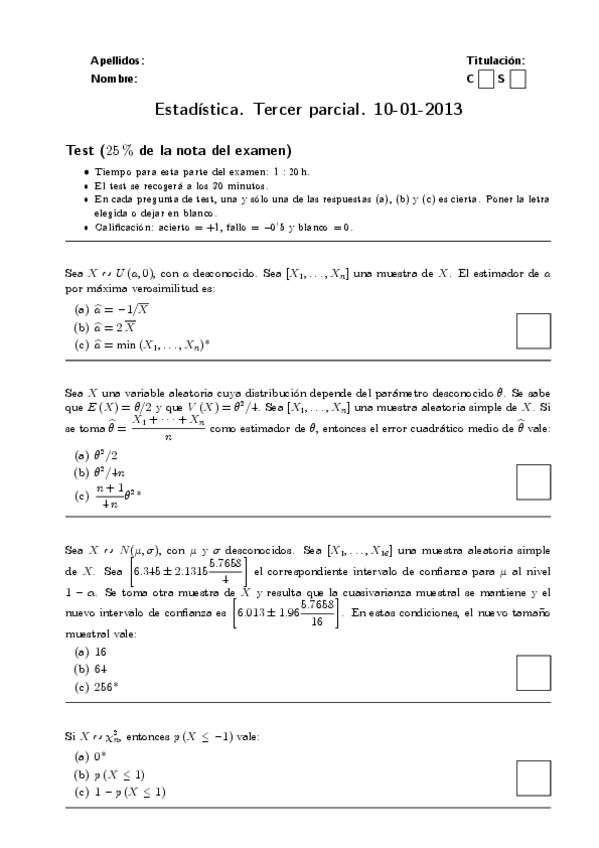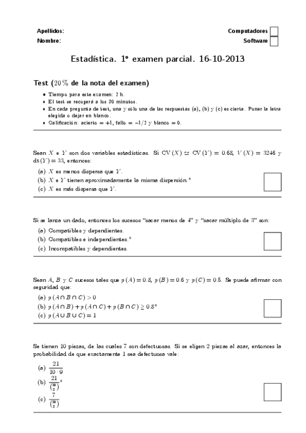 Exámenes Estadística 2º Curso