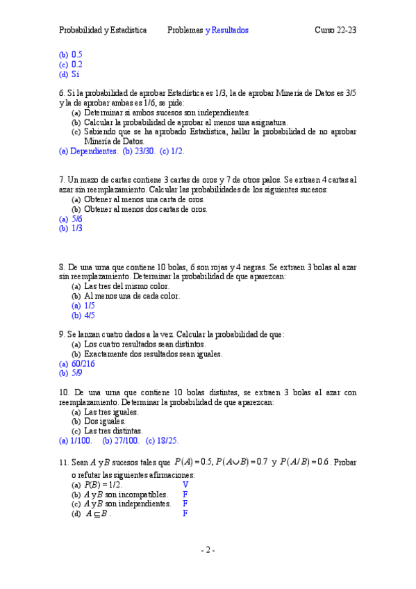 He publicado nuevos examenes de 2º Probabilidad y Estadística: Muchos_Examenes