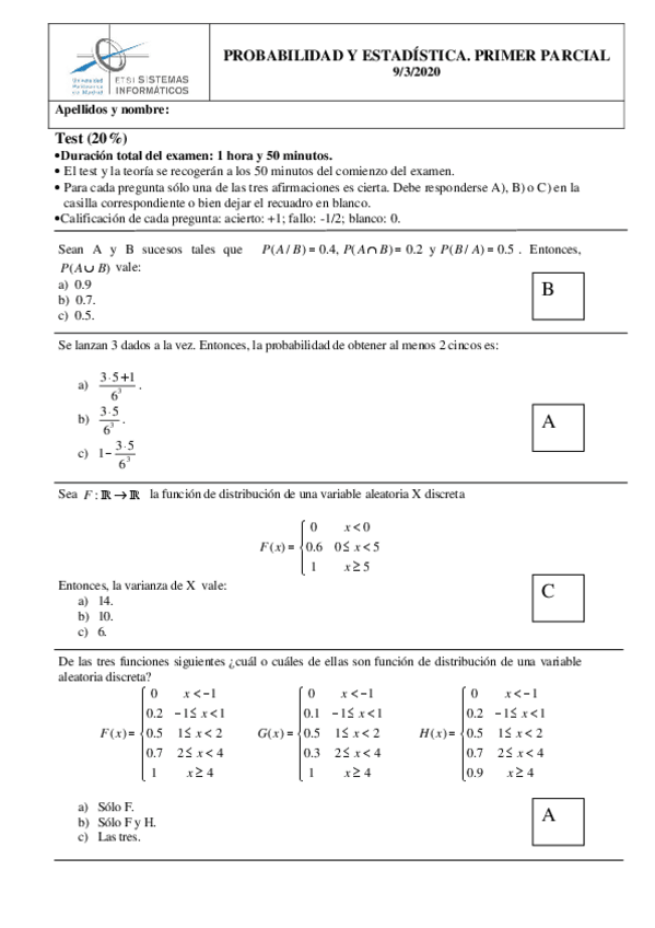He publicado nuevos examenes de 2º Probabilidad y Estadística: 1o-PARCIAL-2023.pdf