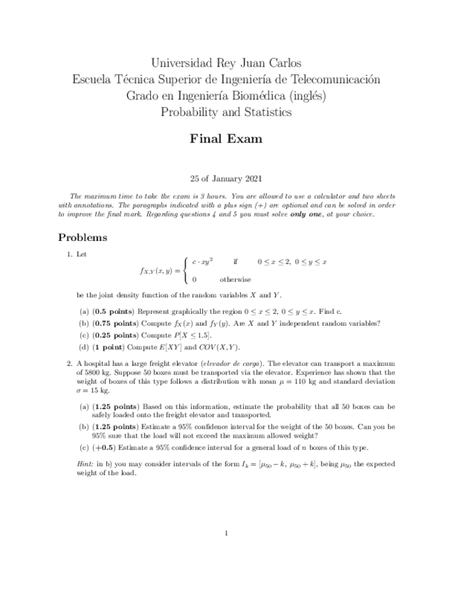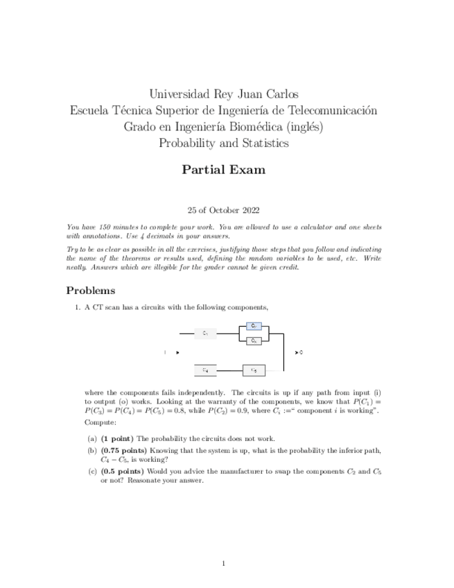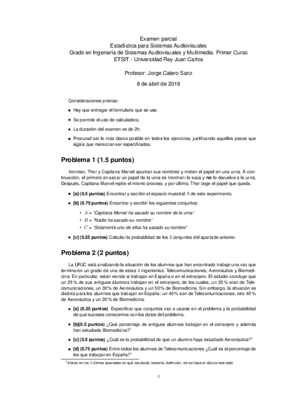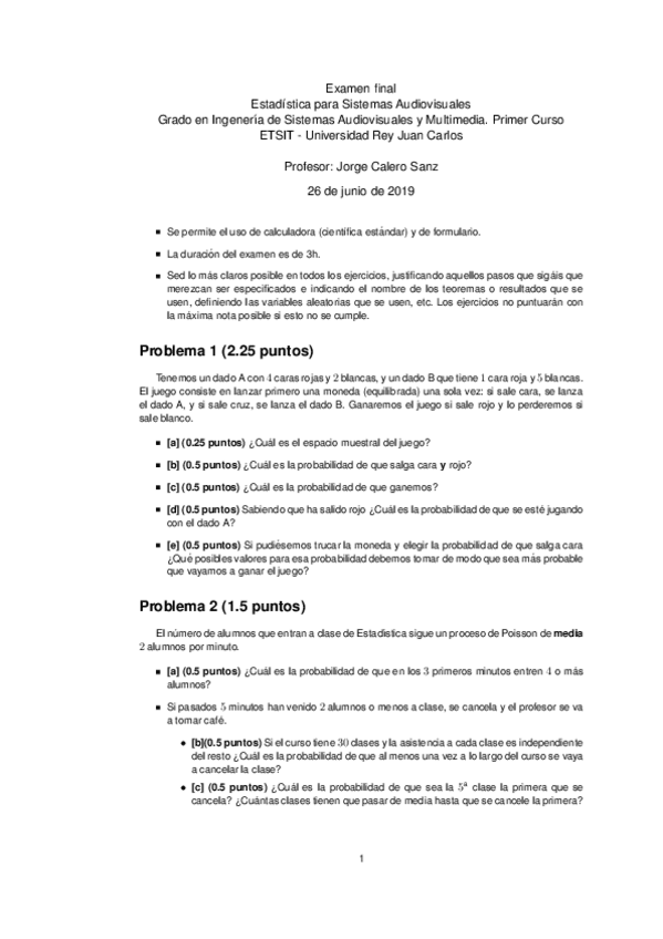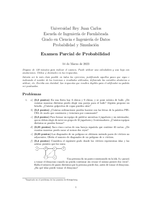 He publicado nuevos examenes de 1º Probabilidad y simulación: Examen