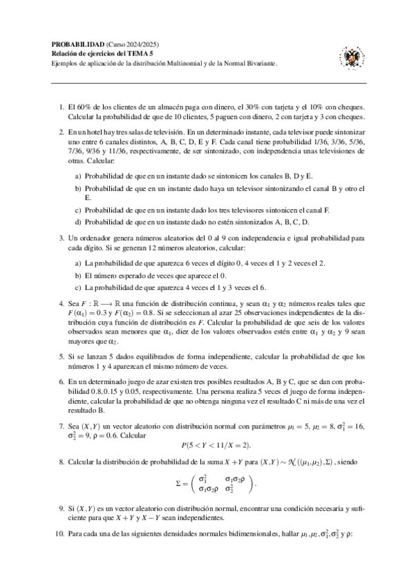 He publicado nuevos ejercicios de 3º Probabilidad: Relacion-Tema-5.pdf