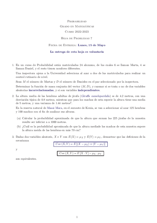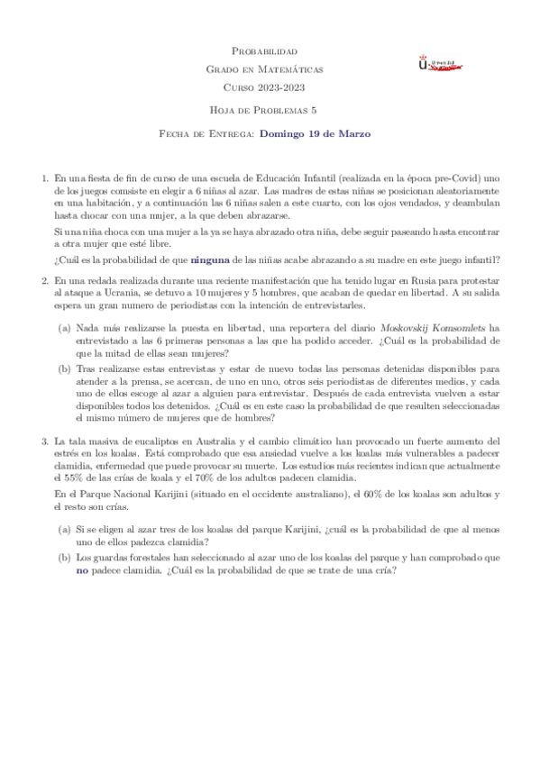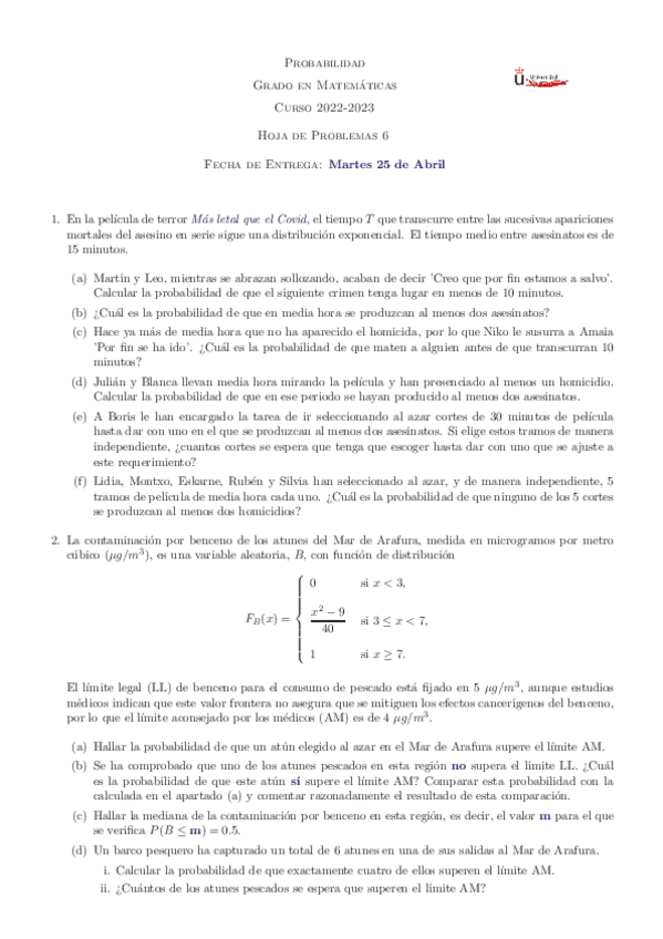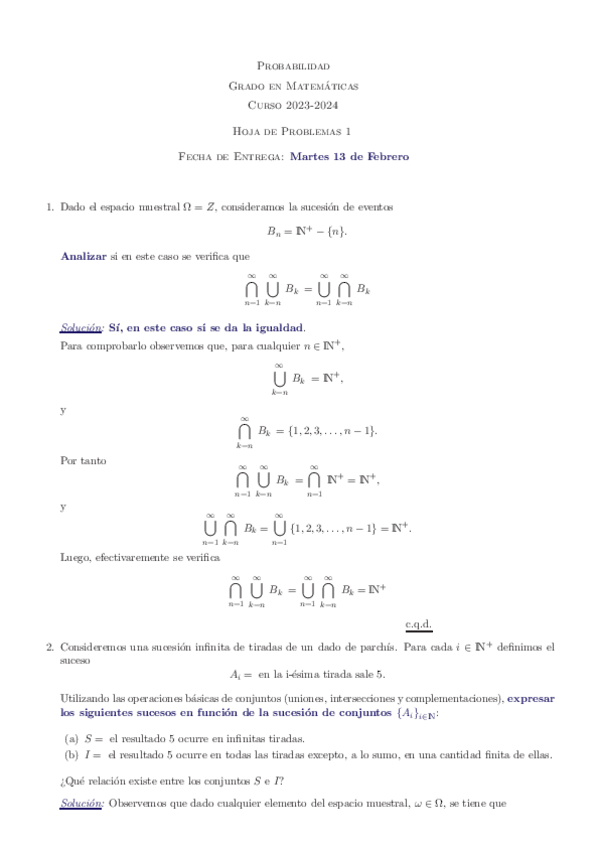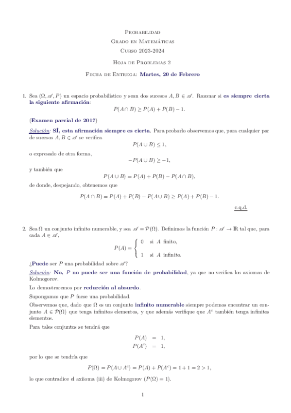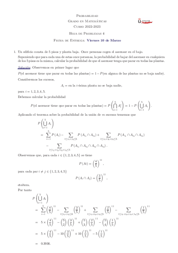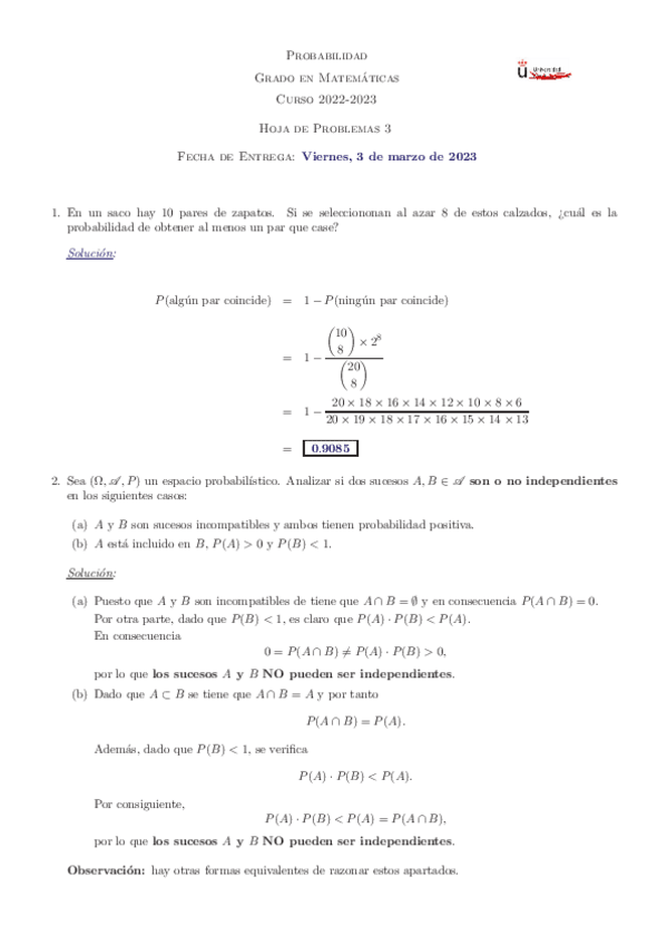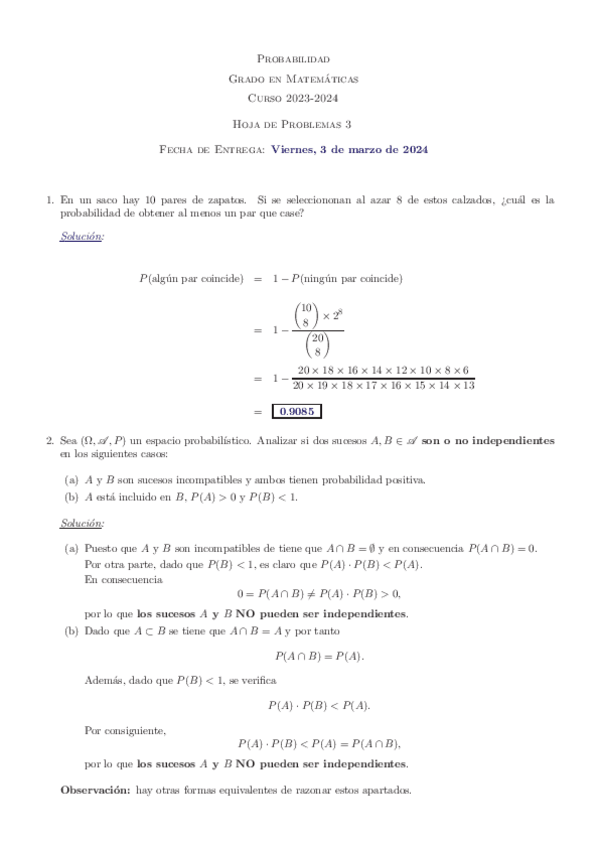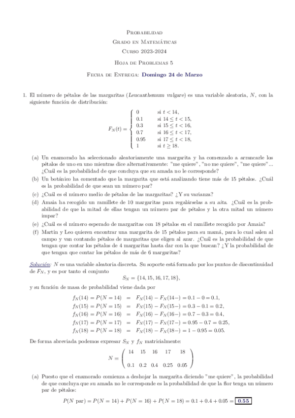 He publicado nuevos apuntes de 1º Probabilidad: Hojas de ejercicios