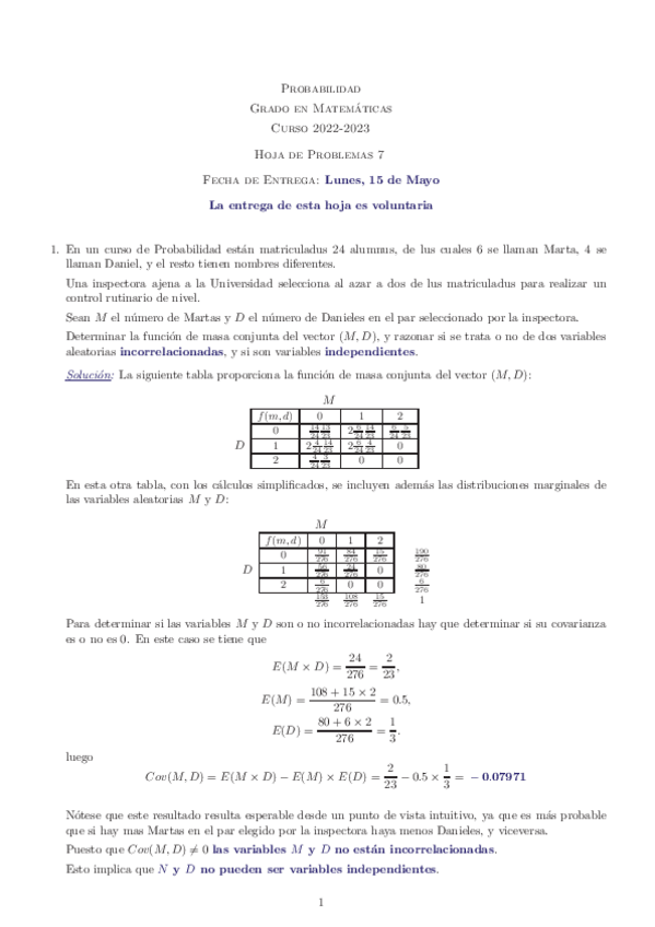 He publicado nuevos apuntes de 1º Probabilidad: Hojas ejercicios