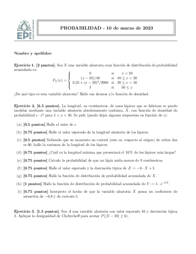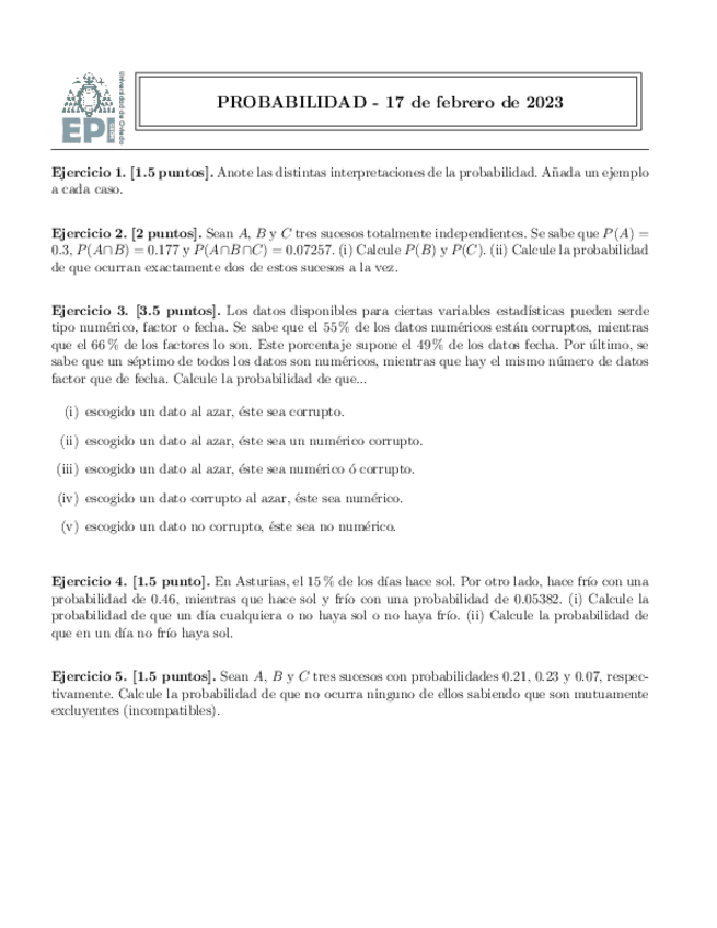 He publicado nuevos examenes de 1º Probabilidad: Examenes pruebas continuas