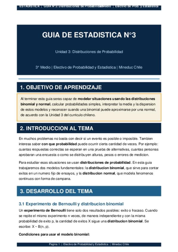 Esta guía modela fenómenos aleatorios mediante las distribuciones Binomial y Normal. Aprenderás a identificar experimentos de Bernoulli, calcular probabilidades de éxito en $n$ ensayos y dominar la Campana de Gauss. Incluye la regla del 68-95-99,7%, el pr