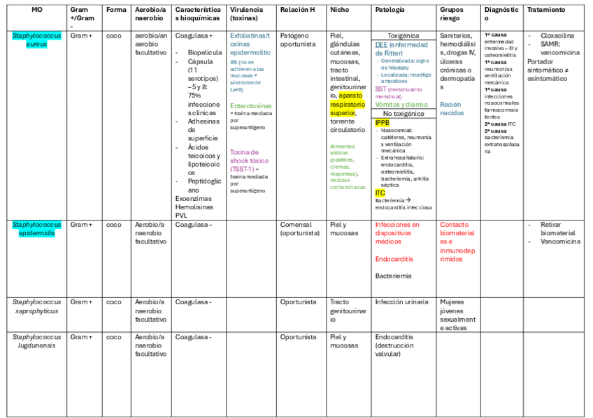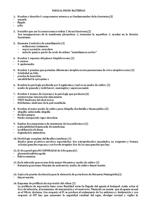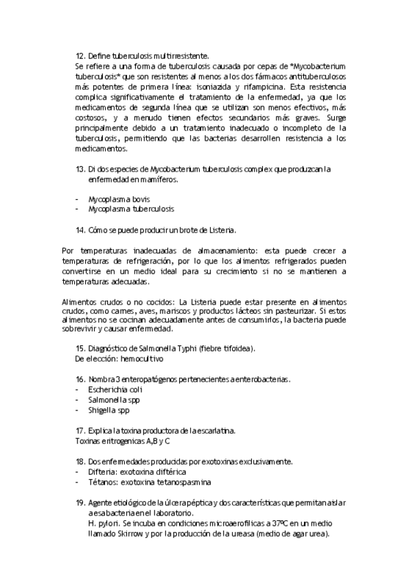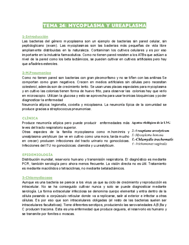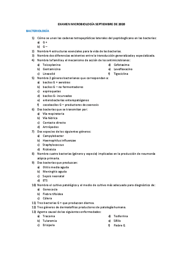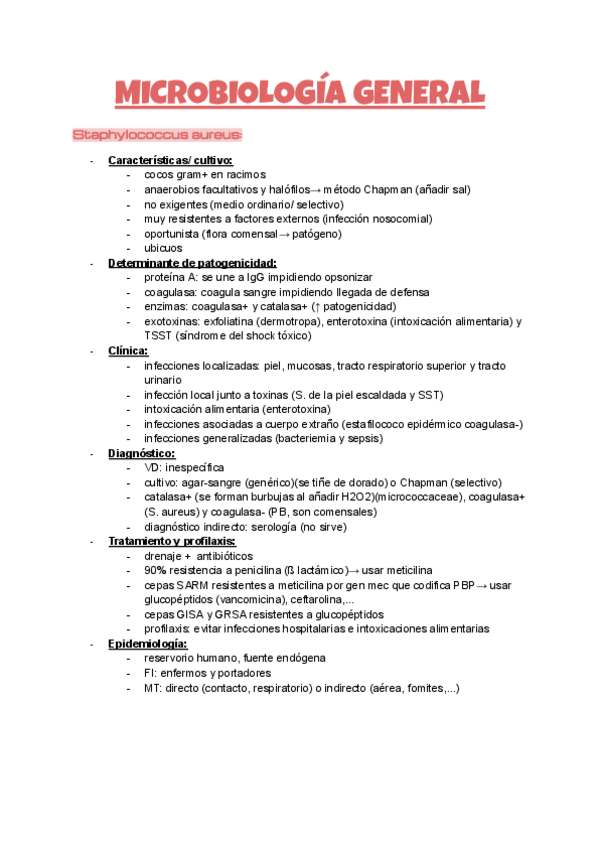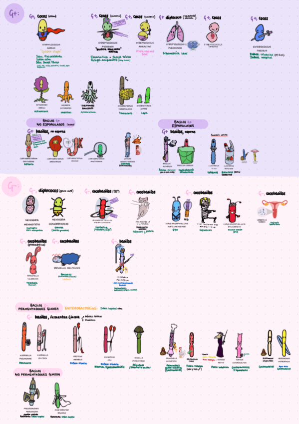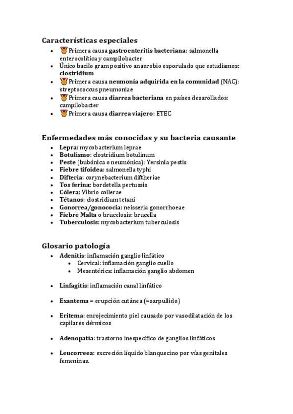 Listas bacterias (ETS, intracelulares, EDO, etc.), enfermedades más importantes, características diferenciadoras y glosario de patología