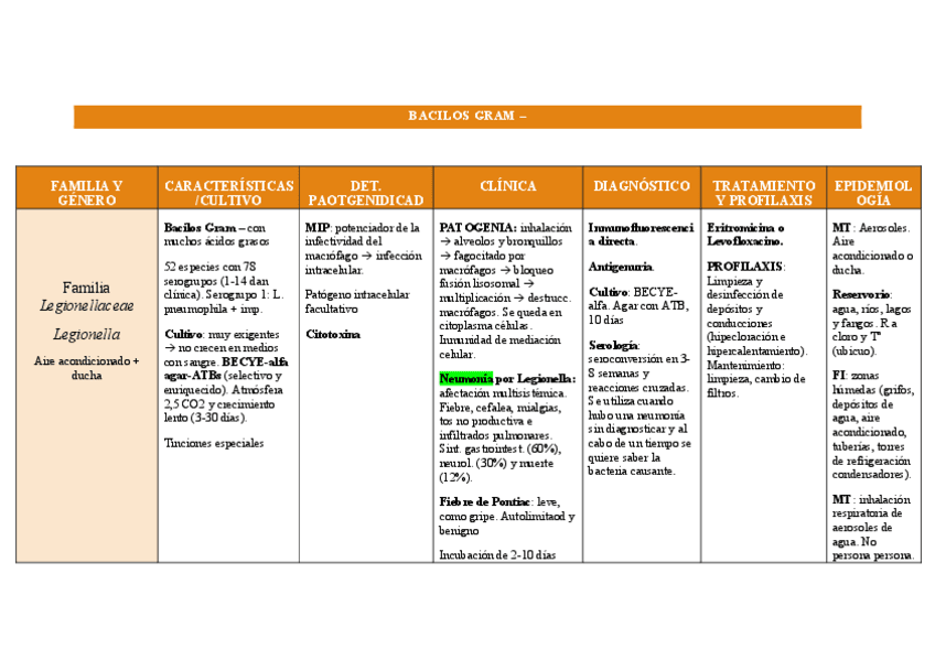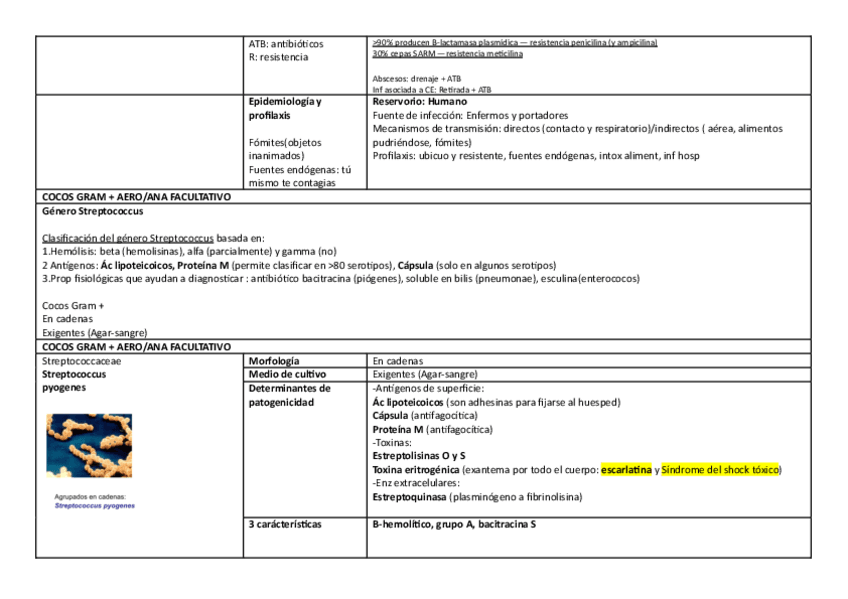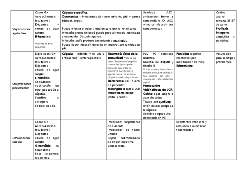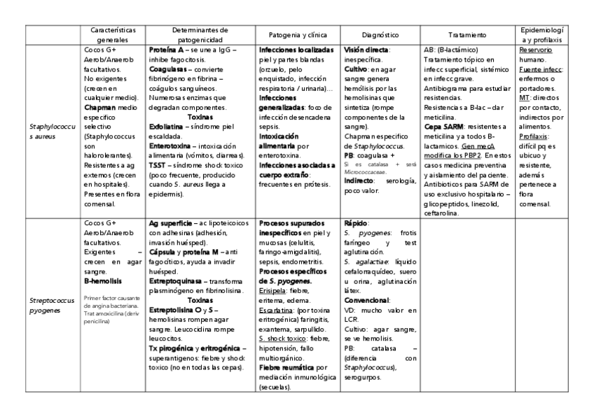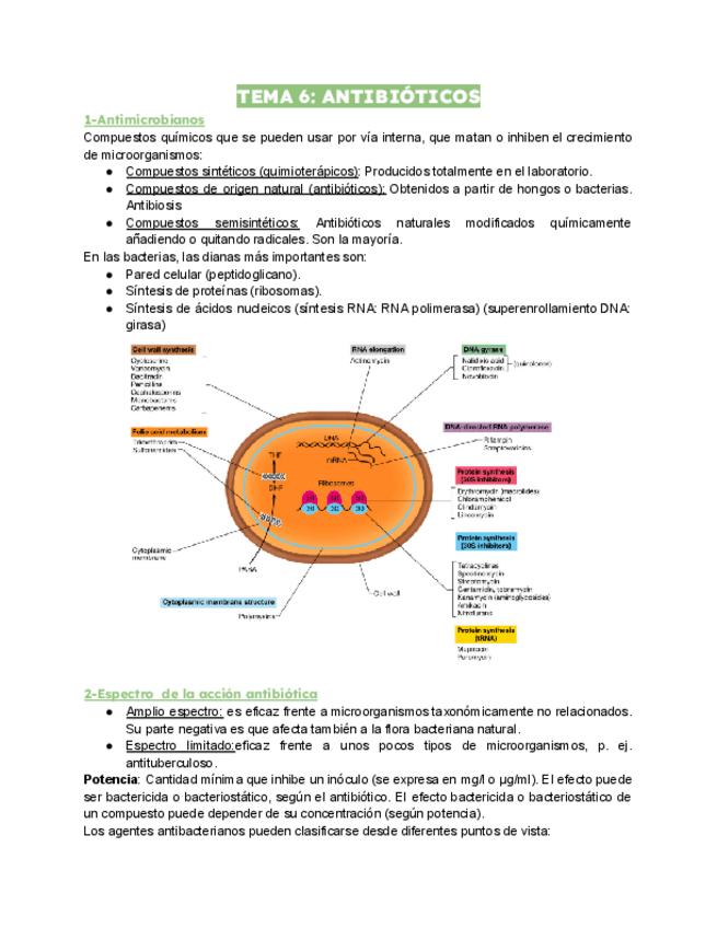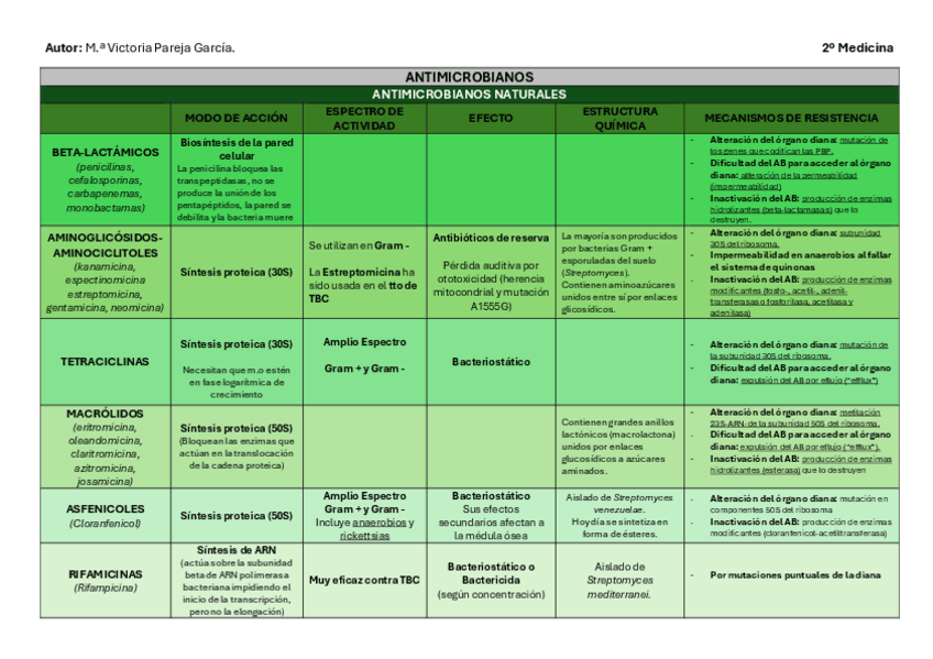 Tablas de bacterias (bloques de bacteriología especial) y antimicrobianos (tema muy importante del bloque de bacteriología general)