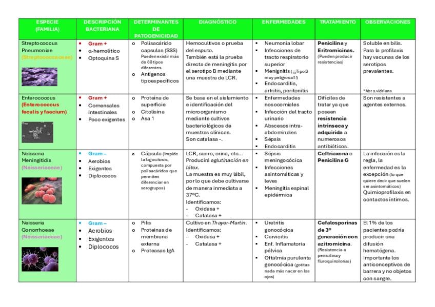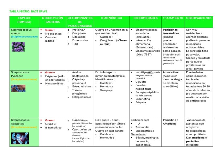 Tablas de las bacterias de micro eliminando lo que la profesora no nombra en clase y poniendo solo lo más destacable. Nuevo plan de estudios