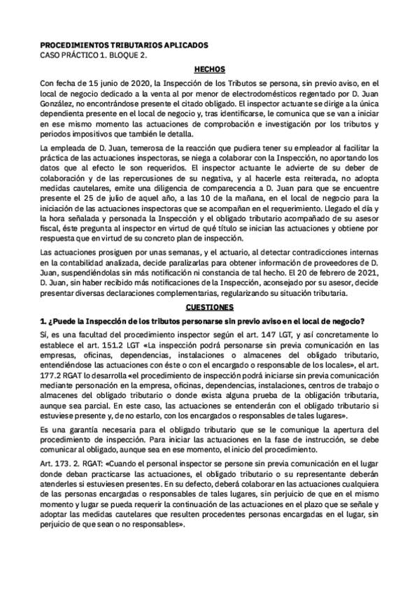 PROCEDIMIENTOS TRIBUTARIOS PRÁCTICAS