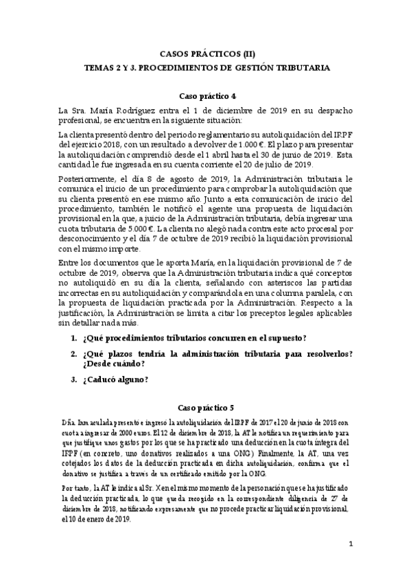 He publicado nuevos practicas de 4º Procedimientos Tributarios: Casos-practicos-Derecho-tributario.pdf