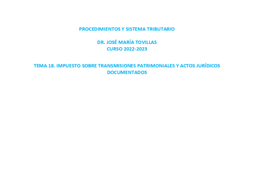 He publicado nuevos apuntes de 3º Procedimientos y Sistema Tributario: Tema-3-Impuesto-sobre-transmisiones-patrimoniales- y-actos-jurídicos-documentados-III.pdf