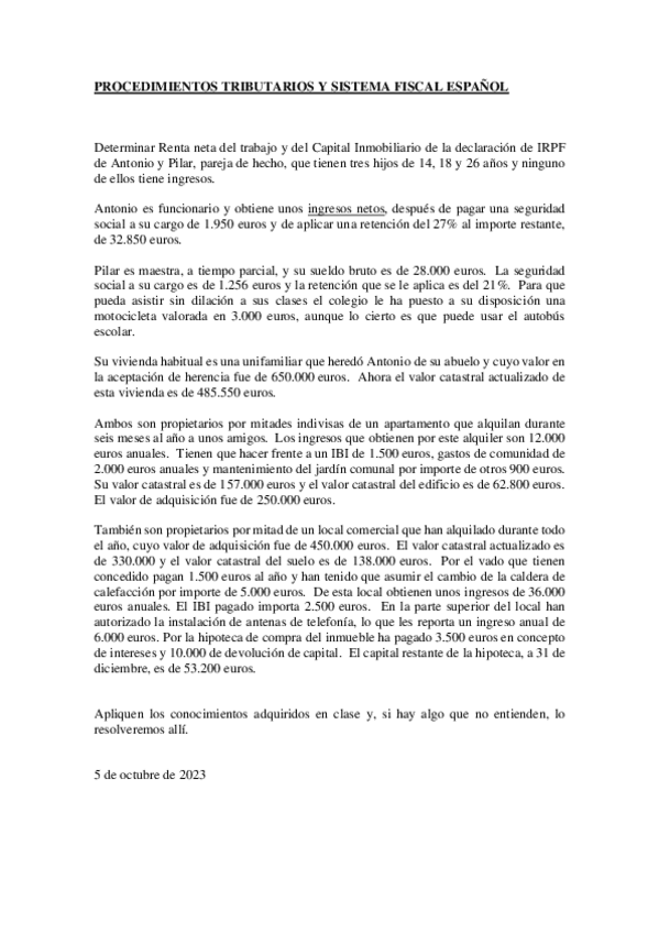 He publicado nuevos practicas de 3º Procedimientos y Sistema Tributario: Supuesto-para-resolver-IRPF-RT-1-1.pdf