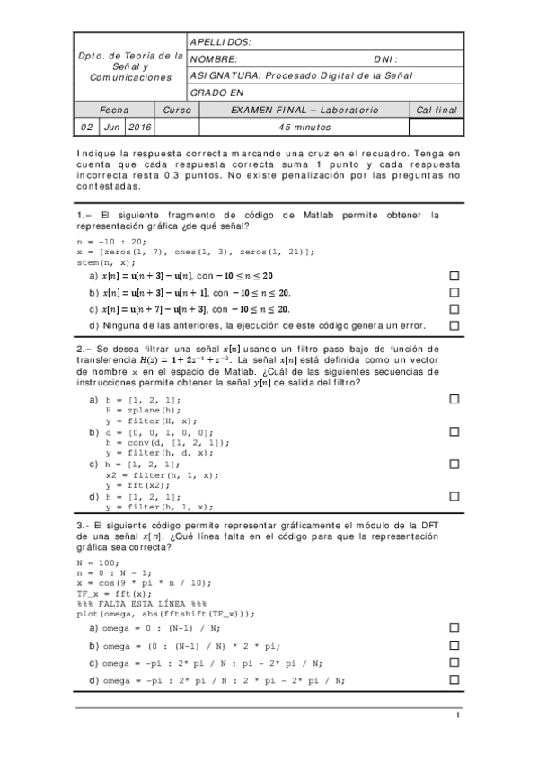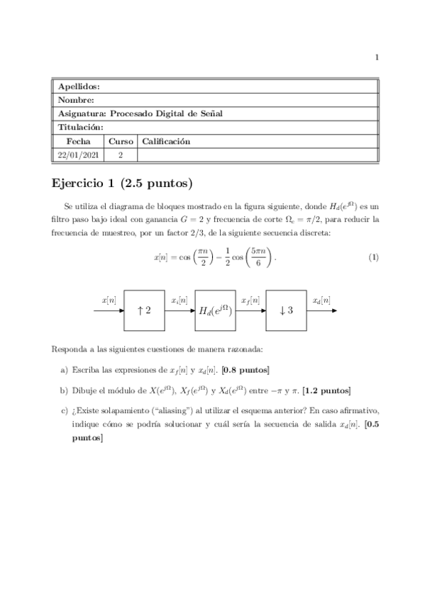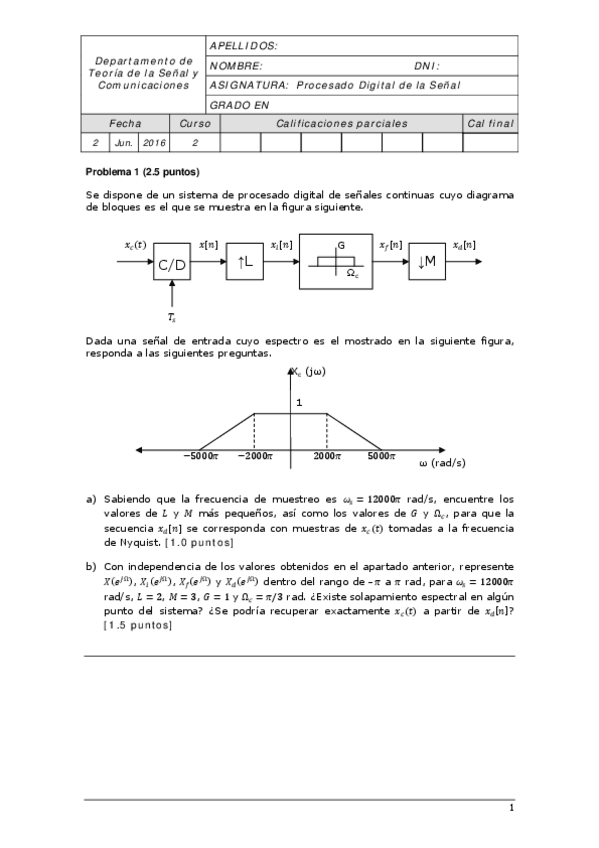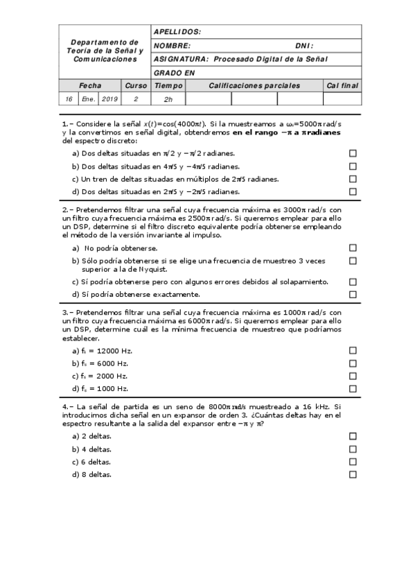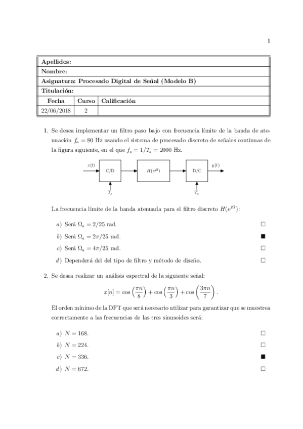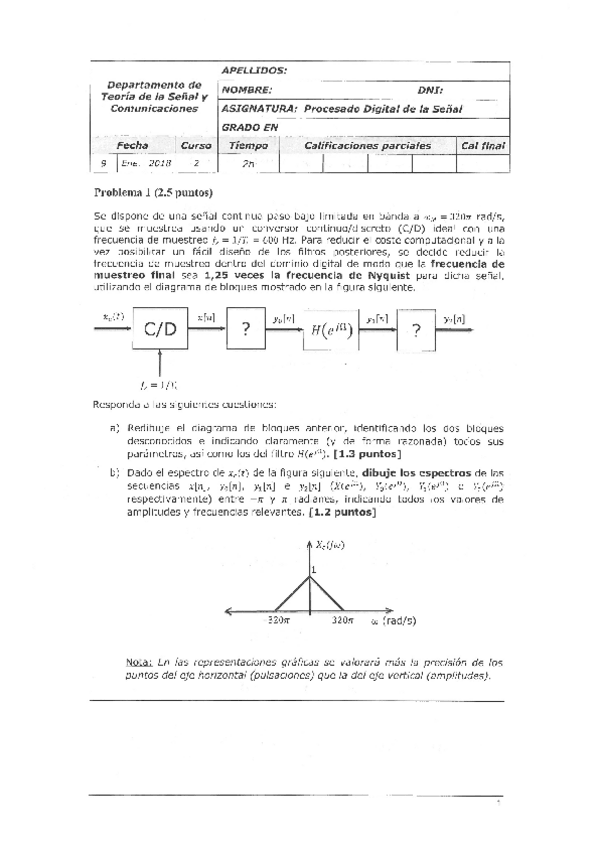 He publicado nuevos examenes de 2º Procesado Digital de la Señal: Procesado Digital de la Señal
