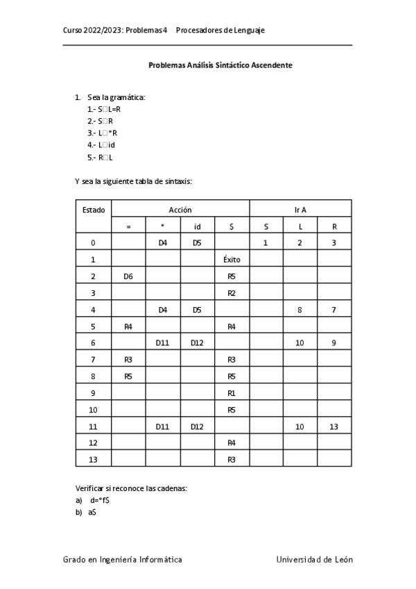 He publicado nuevos ejercicios de 4º Procesadores de Lenguaje: Problemas-Analisis-Sintactico-Ascendiente.pdf