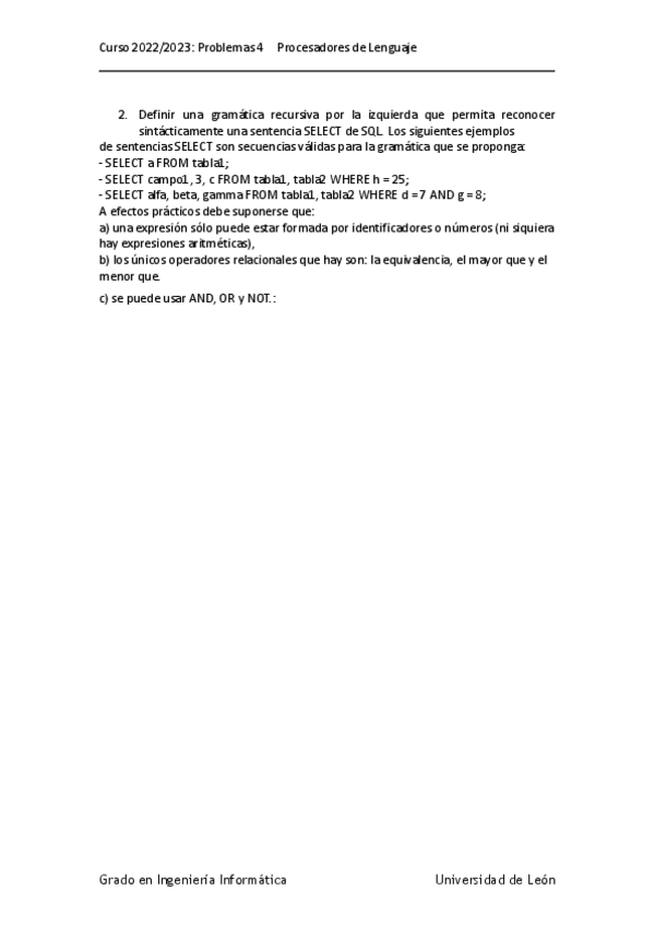 Prácticas procesadores del lenguaje ingeniería informática ULE 2022/2023