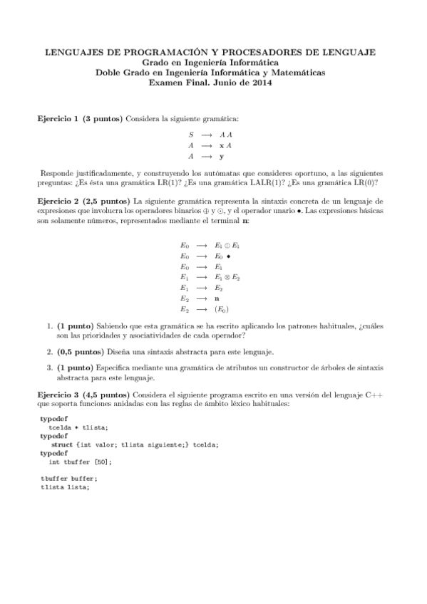 He publicado nuevos ejercicios de 4º Procesadores de Lenguajes: Ejercicios-PL-resueltos.pdf