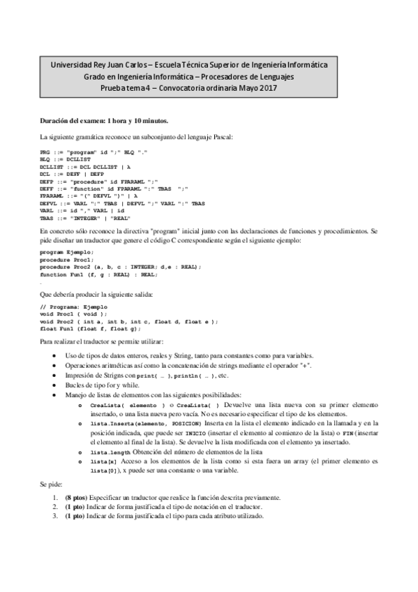 He publicado nuevos examenes de 4º Procesadores de Lenguajes: Exámenes del Tema 4