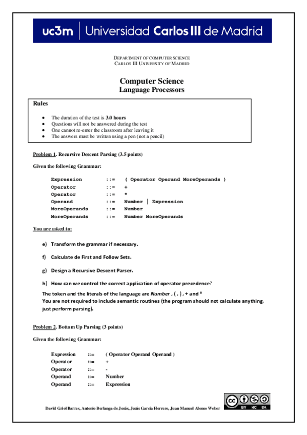 He publicado nuevos examenes de 3º Procesadores del Lenguaje: Parcial2ProcesadoresLenguaje.pdf