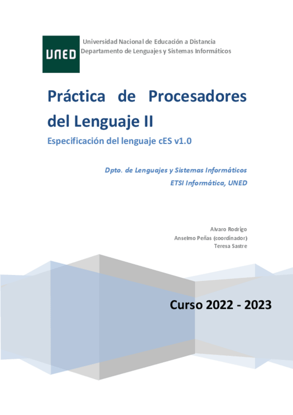 He publicado nuevos practicas de 3º Procesadores del Lenguaje II: DirectricesImplementacionPracticaPL220222023.pdf