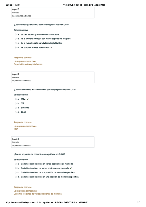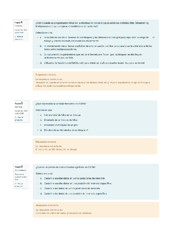 He publicado nuevos examenes de 3º Procesadores gráficos avanzados: Examen - Tipo test - CUDA.pdf