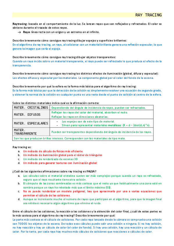 He publicado nuevos examenes de 3º Procesadores gráficos avanzados: Examen - Tipo test - Ray Tracing.pdf