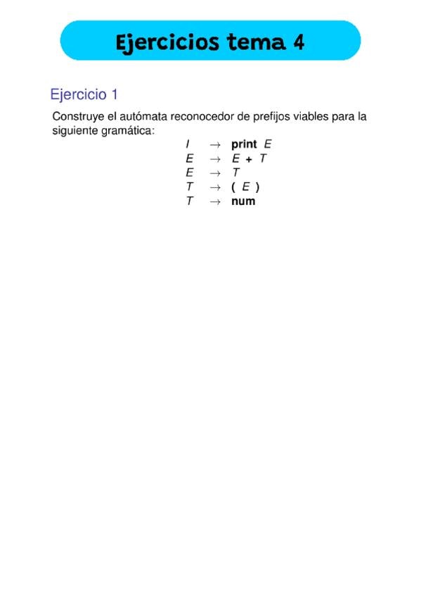 He publicado nuevos ejercicios de 4º PROCESAMIENTO DE LENGUAJES: Ejercicios-tema-4-PL.pdf