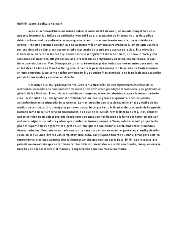 He publicado nuevos apuntes de 1º Proceso Audiovisual: Opinión sobre la película Network.pdf
