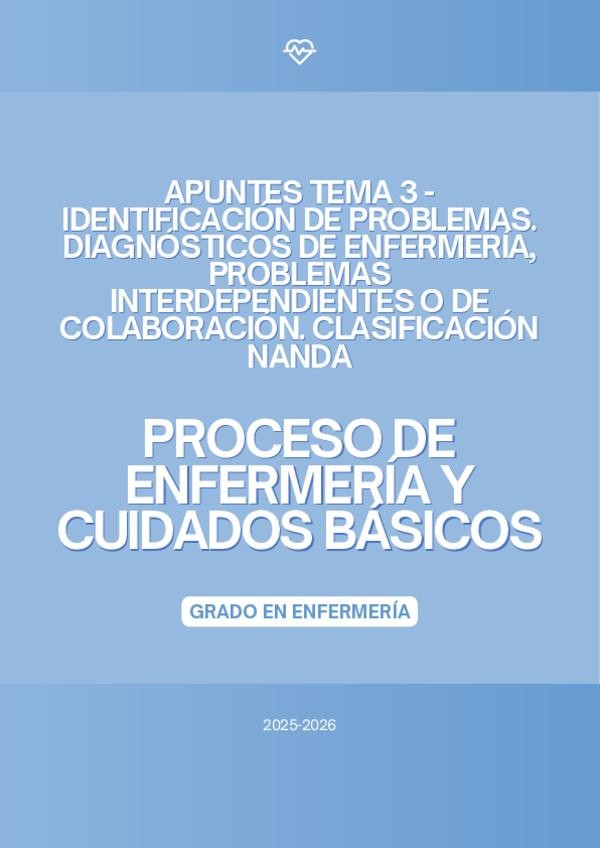 En este documento se encuentra el tema 3 de la asignatura "Proceso de Enfermería y Cuidados Básicos" de la profesora Marta López Bueno del curso académico 2025-2026