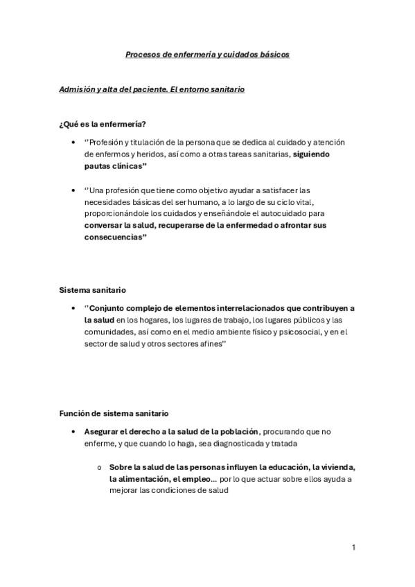 En este documento se encuentra el tema 1 de la asignatura "Proceso de Enfermería y Cuidados Básicos" del Grado en Enfermería de la profesora Marta López Bueno, del curso académico 2025-2026