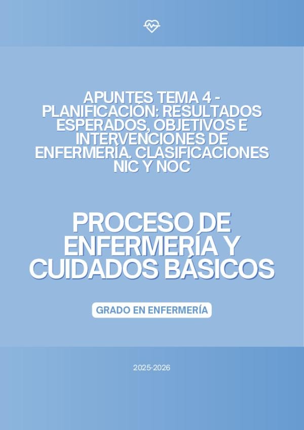 En este documento se encuentra el tema 4 de la asignatura "Proceso de Enfermería y Cuidados Básicos" de la profesora Marta López Bueno del curso académico 2025-2026